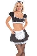 Abito da club a balze con allacciatura dietro al collo. La schiena rimane scoperta nella parte superiore. Le balze arricciano l'abito sia sul davanti che sopra le natiche. Molto corto, la carica erotica viene accentuata dalle due bande trasparenti in pizzo floreale, una sul davanti e una sul di dietro, che attraversano al centro in senso verticale l'intero vestito.